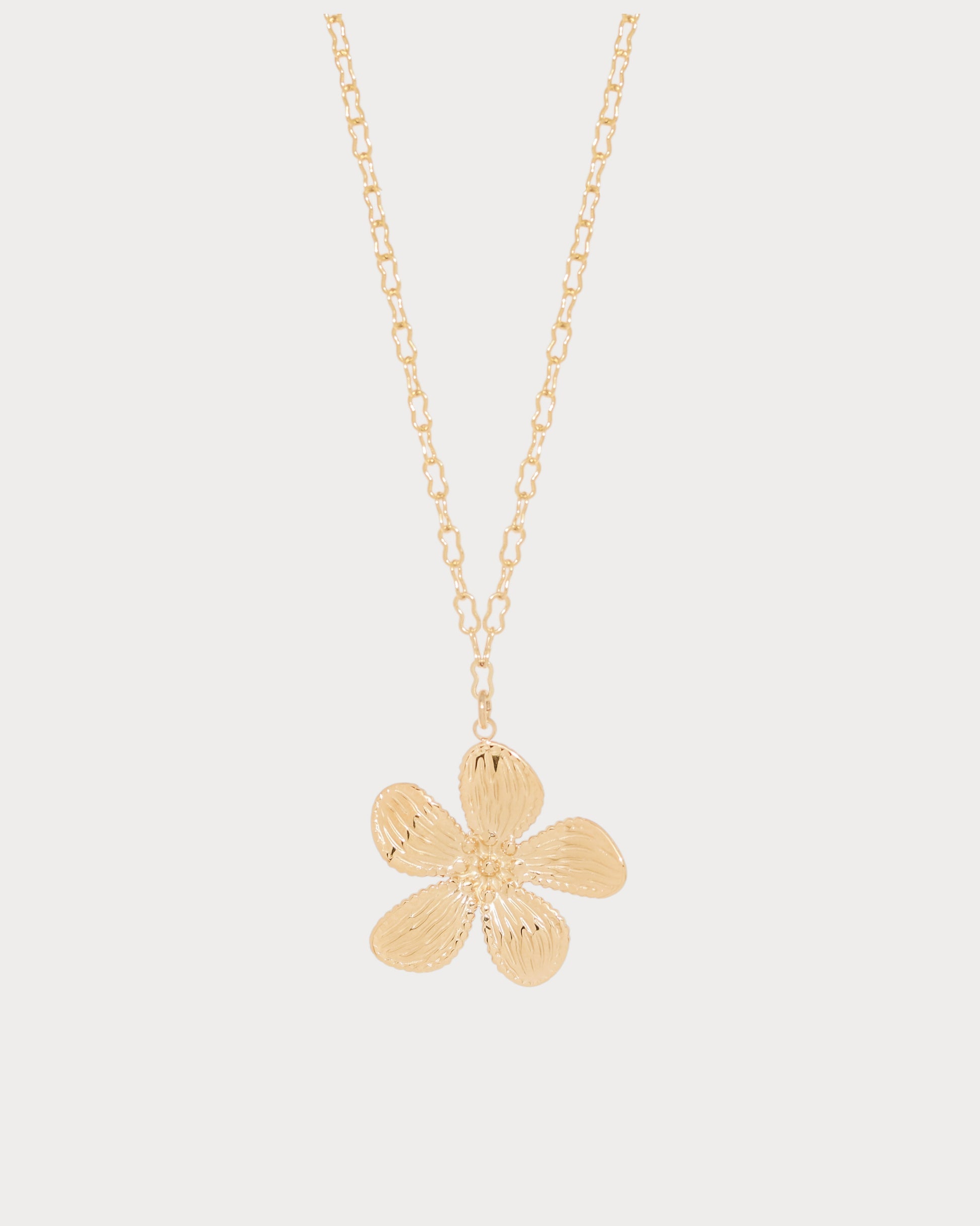 This enchanting necklace features a large intricate floral bloom, symbolizing beauty and grace, making it a perfect addition to any jewelry collection.