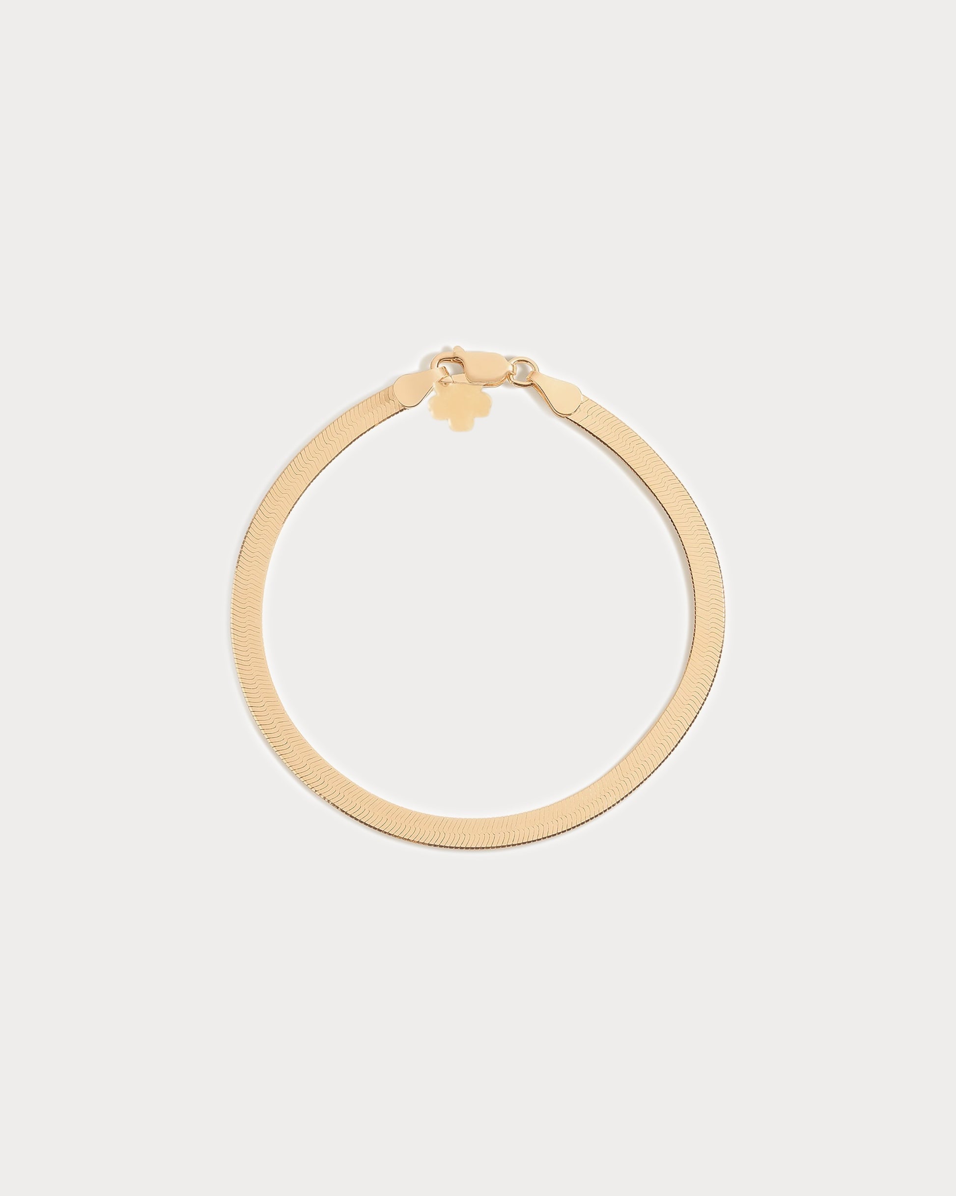 Catch the golden ray bounce of your wrist with this exquisite herringbone design bracelet. Perfect base layer for stacking.